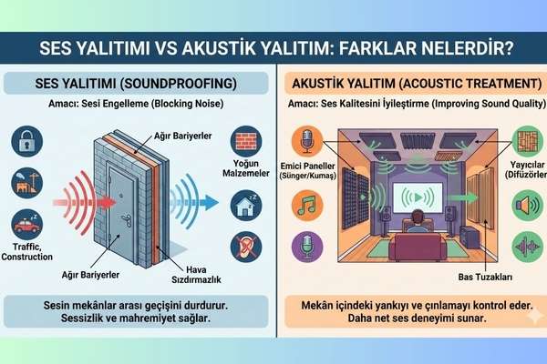 Günlük hayatta sıkça birbirinin yerine kullanılan ses yalıtımı ve akustik yalıtım , aslında farklı amaçlara hizmet eden iki ayrı uygulamadır. Her ikisi de sesle ilgilidir ancak ...